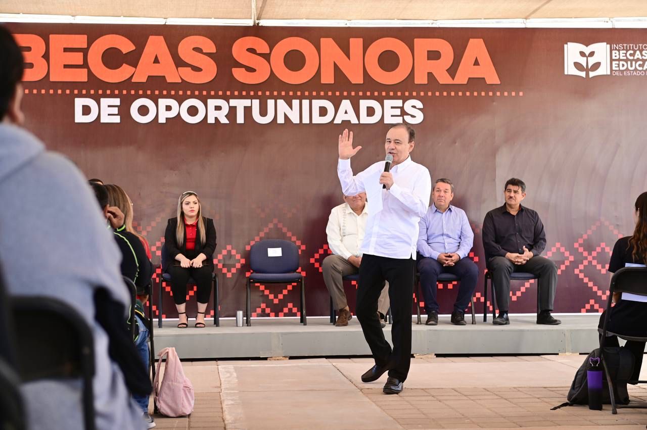 En su gira de trabajo por Guaymas y Empalme, el mandatario estatal continuó con su compromiso de entrega de becas del programa Sonora de Oportunidades a estudiantes de universidades públicas, a quienes benefició con un total de 168 estímulos otorgados en Instituto Tecnológico de Sonora (Itson), campus Empalme, con la finalidad de combatir la deserción escolar en el estado, cuya inversión asciende a un millón 350 mil pesos.