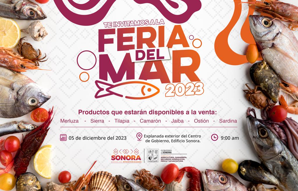 Hermosillo, Sonora; 30 de noviembre de 2023.- Para ofertar los platillos preparados con especies marinas y acuícolas del litoral sonorense como merluza, sierra, tilapia, camarón, jaiba, ostión y sardina, el Gobierno de Sonora a través de la Sagarhpa realizará este 5 de diciembre la “Feria del Mar”.