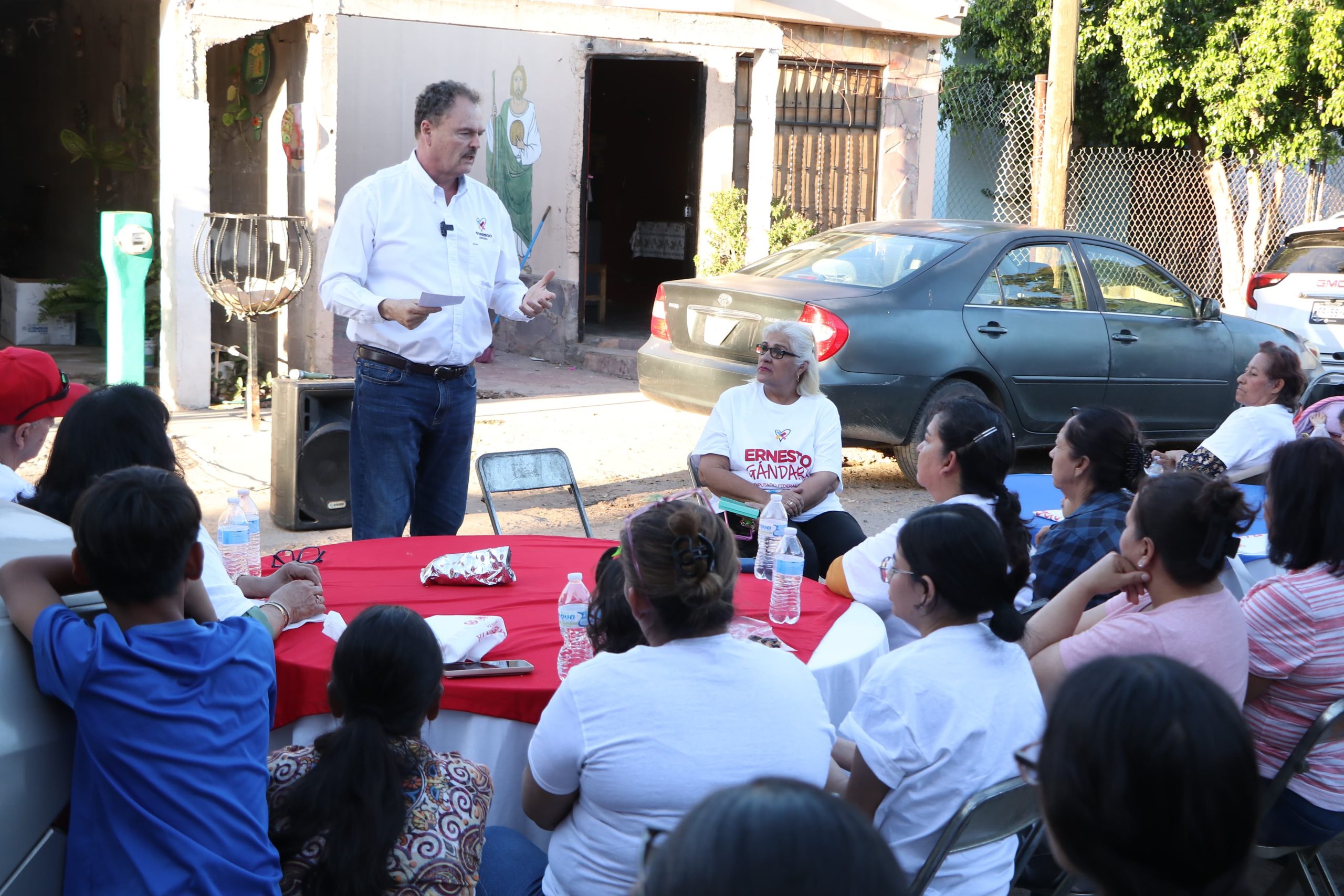 Hermosillo, Son; 7 de abril.- Ernesto “El Borrego” Gándara visitó a vecinos de la colonia Agualurca, en el sector suroriente de Hermosillo, de quienes escuchó y tomó nota de las mejoras que requieren presupuesto y que como legislador podrá gestionar.