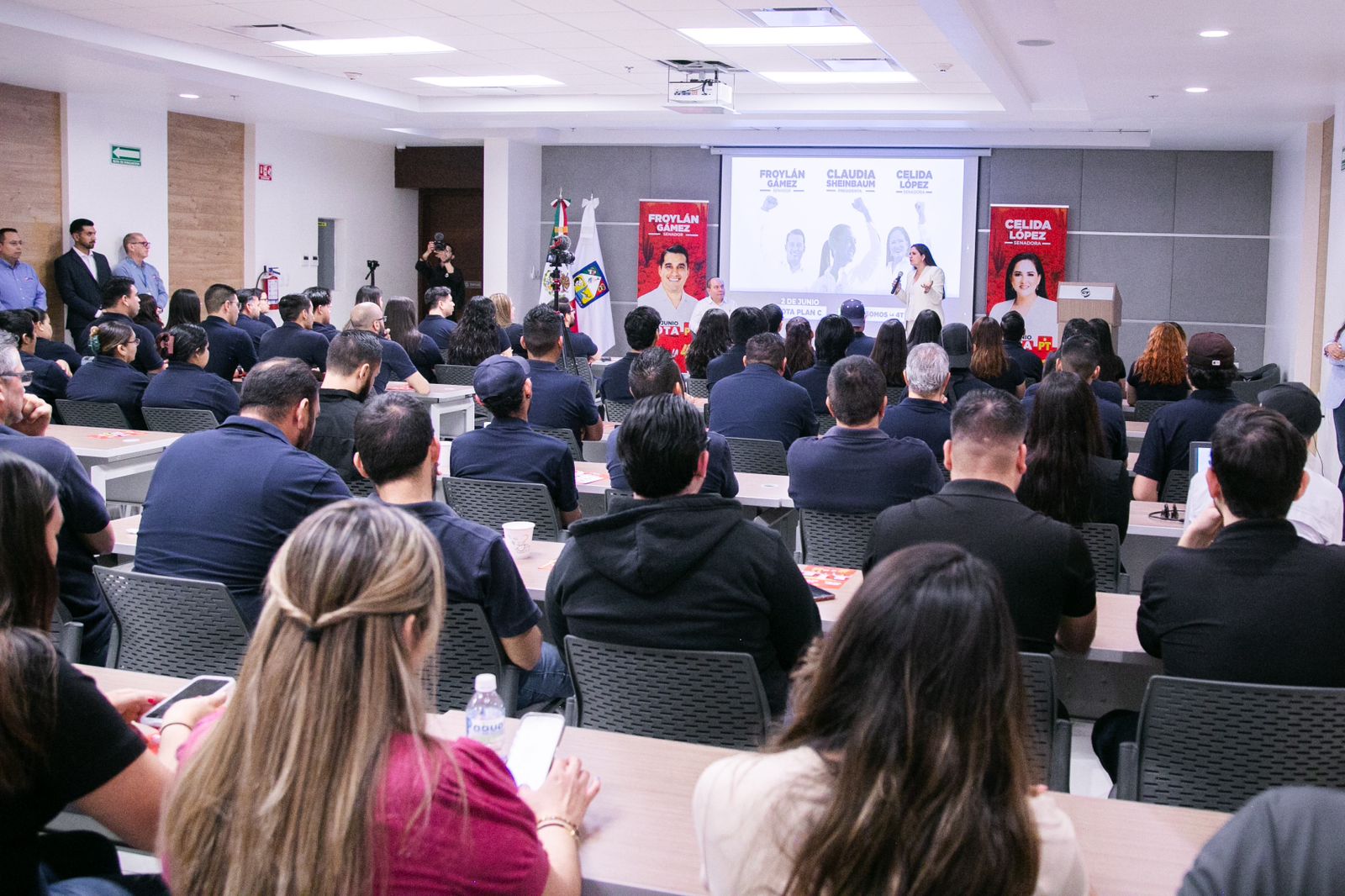 8 de mayo, Hermosillo, Son.- La candidata al Senado, Celida López, sostuvo una reunión con empleados de CT Internacional, empresa sonorense líder en tecnologías de la información, a quienes presentó los planes e ideas que impulsarán desde la Cámara Alta.
