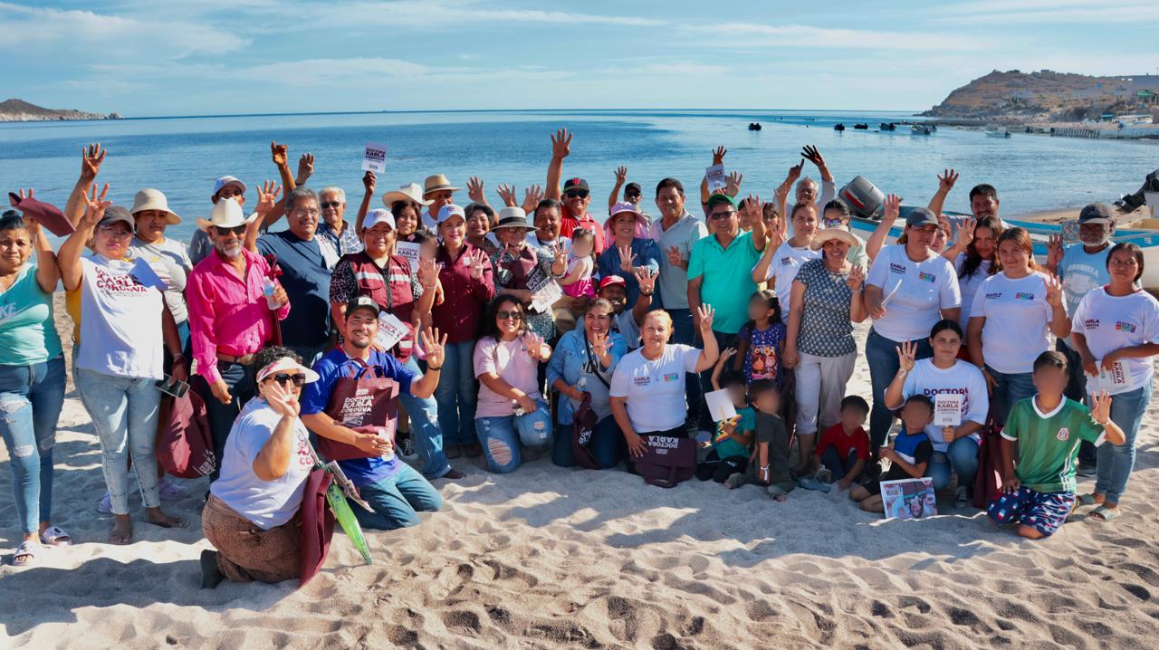 Guaymas, Sonora, 14 de mayo de 2024. Residentes de La Manga 1 dieron un gran recibimiento a la doctora Karla Córdova González, candidata a la presidencia municipal, quien presentó los proyectos de trabajo que beneficiarán a todas las familias.