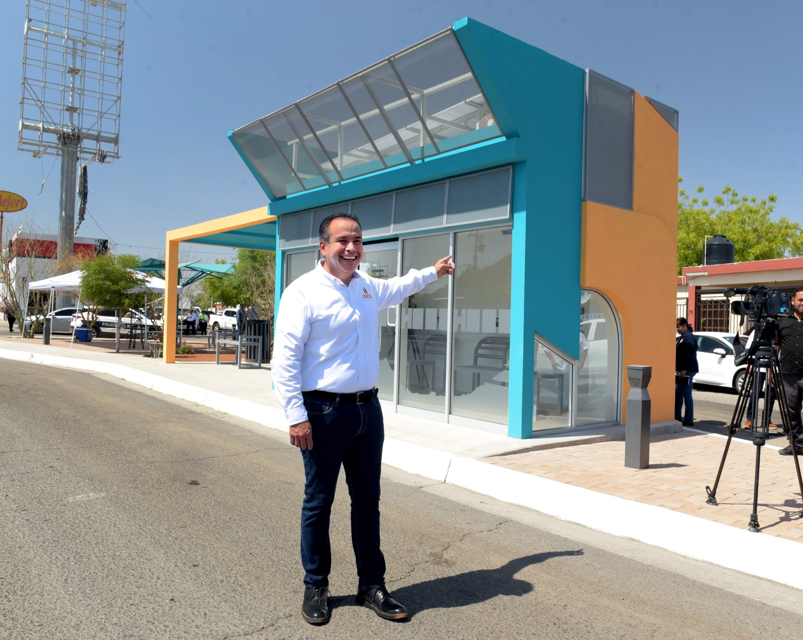 “La intención de nosotros es, que este modelo que es un prototipo, es que podamos multiplicarlo, no todas las paradas de camiones serán del mismo tamaño, porque depende al acceso del espacio público, que tan ancha es la banqueta y que tan grande es el punto, esta la hicimos aquí porque se prestaba no sólo para la parada sino para arreglar el entorno” puntualizó.