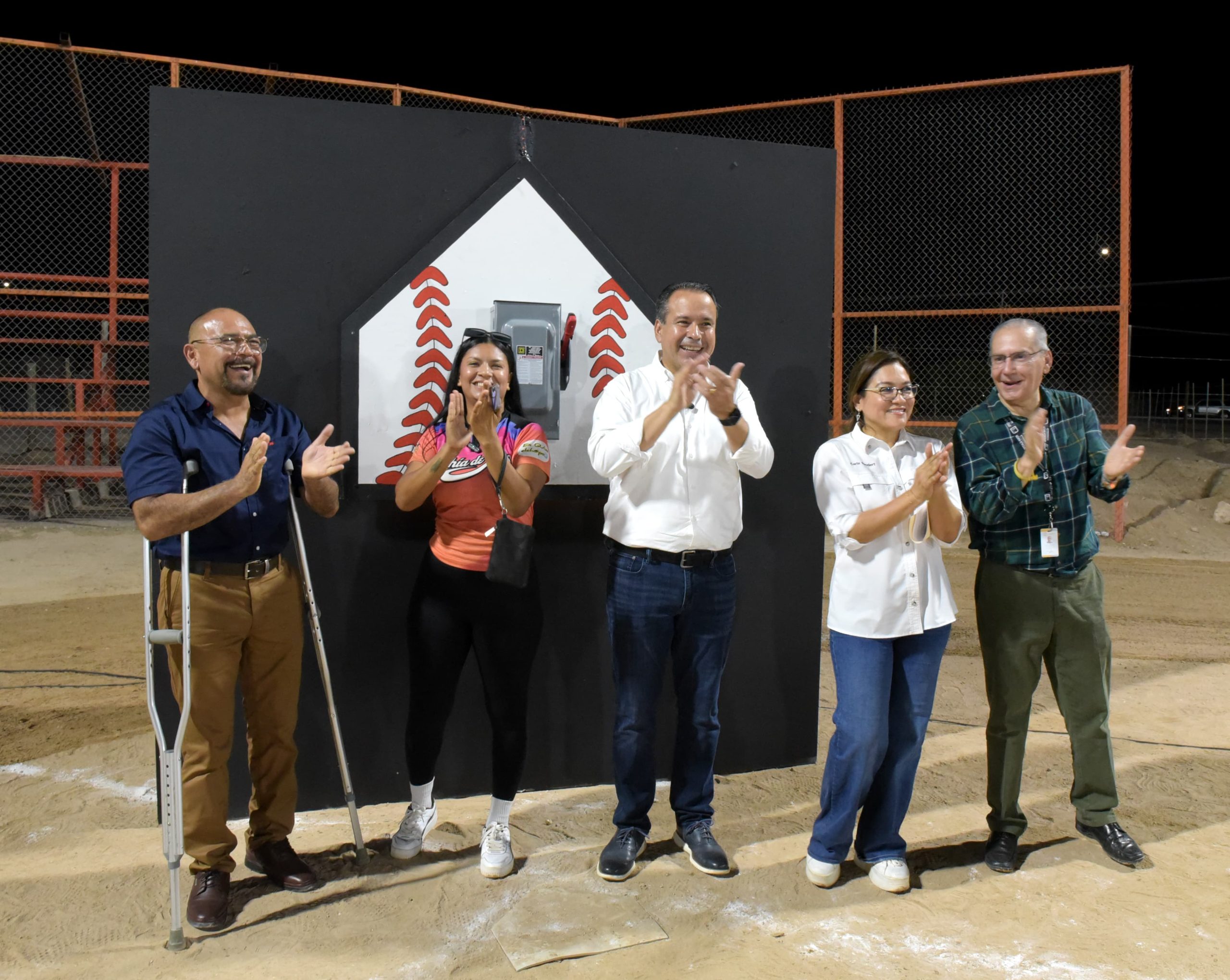 La deportista, junto al Presidente Municipal Antonio Astiazarán, activó el sistema de iluminación semiprofesional que, con una inversión de 2.8 millones de pesos, permitirá la práctica de disciplinas en horario nocturno.