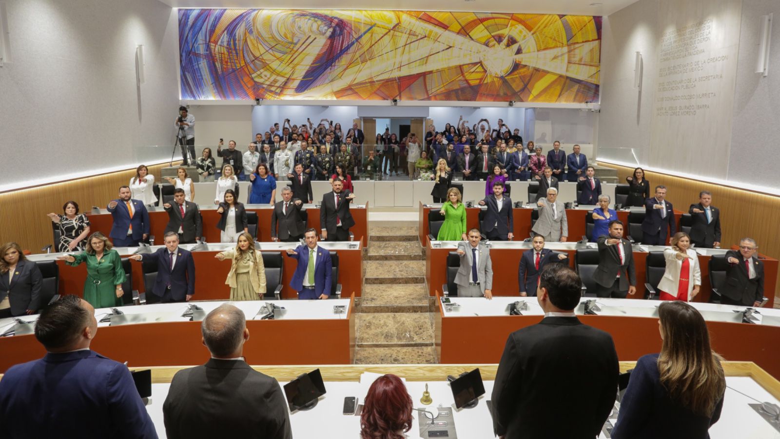Los 33 diputados rindieron protesta de ley ante la presidenta de la Comisión Instaladora, diputada Beatriz Cota Ponce, quien estuvo acompañada por las integrantes de la mesa directiva: Karina Teresita Zárate Félix, vicepresidenta; Iram Solís García, secretario; José Rafael Ramírez Morales y Próspero Valenzuela Múñer, suplentes.