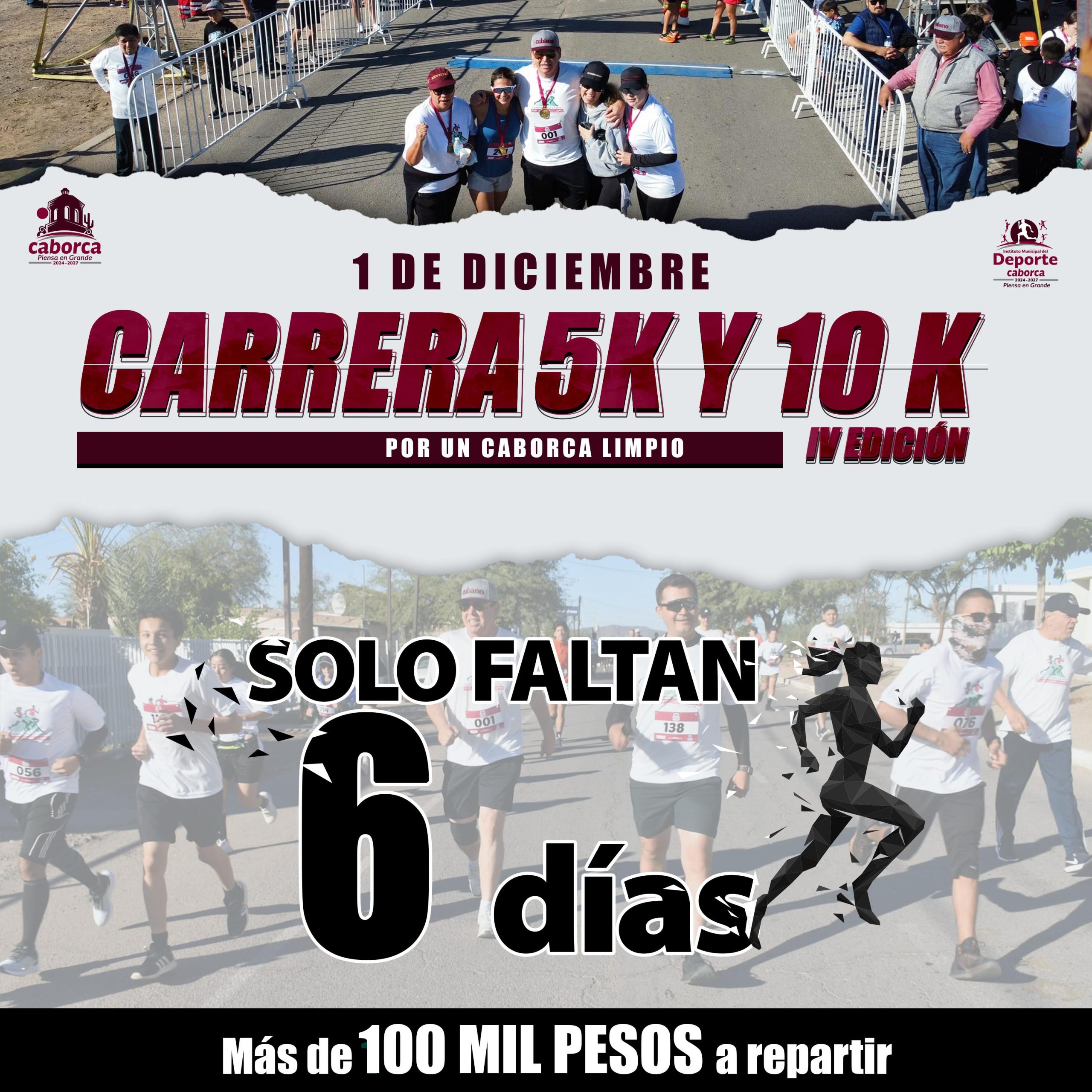 H. Caborca. – A pocos días de la IV edición de la carrera de 5 y 10 kilómetros “Camina, Trota o Corre por un Caborca Limpio”, el H. Ayuntamiento de Caborca a través del Instituto Municipal del Deporte, te invita a formar parte de este evento 100% familiar.