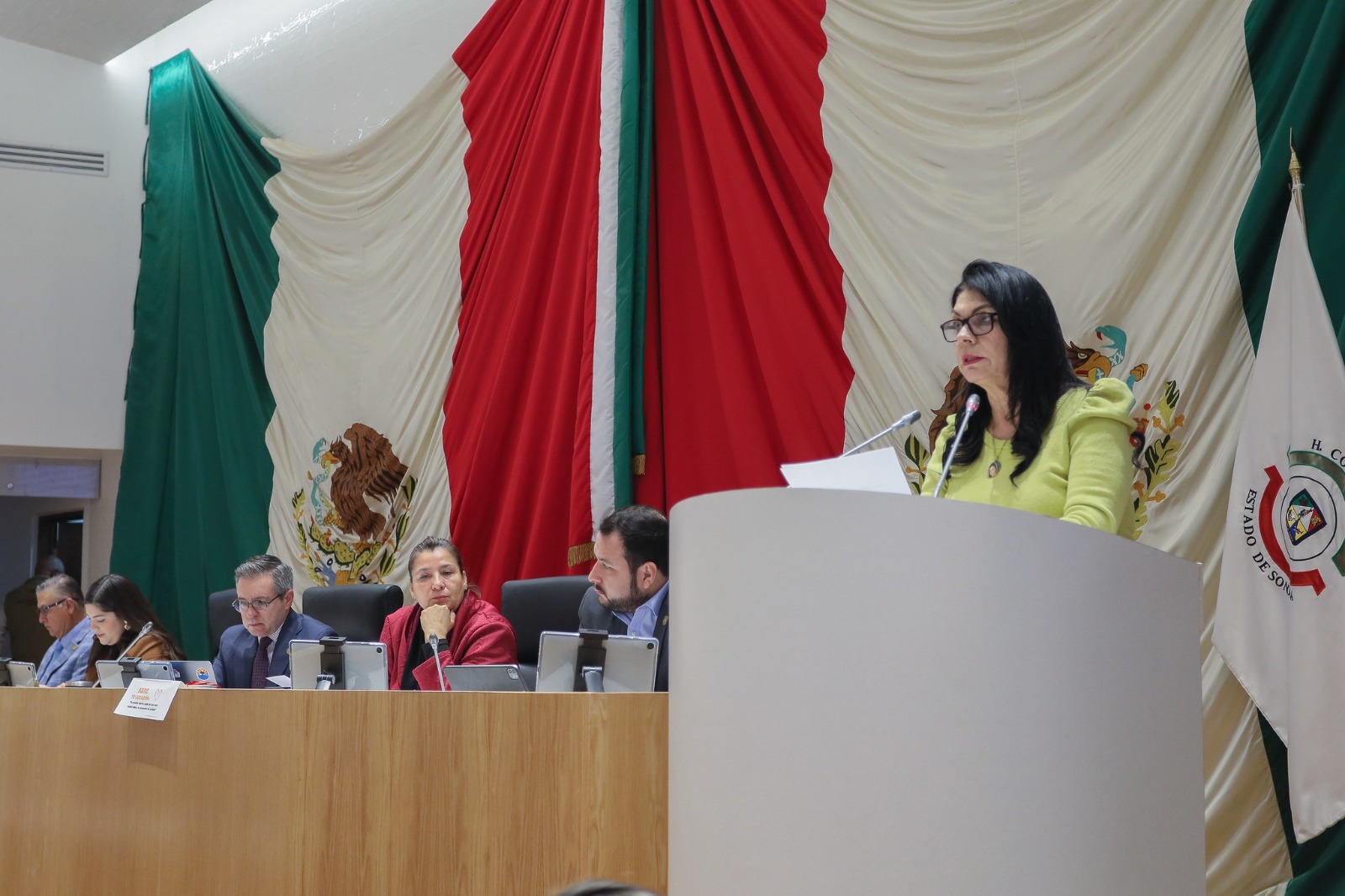 Los diputados Norberto Barraza Almazán (PES), Emeterio Ochoa Bazúa (PRI), David Figueroa Ortega (PVEM) y las diputadas Rebeca Irene Silva Gallardo (NAS) y Gabriela Danitza Félix Bojórquez (MC) presentaron el dictamen de la Comisión de Presupuestos y Asuntos Municipales, mediante el cual el Congreso aprobó, con modificaciones, las leyes y presupuestos de ingresos de los ayuntamientos para el ejercicio fiscal 2025, exceptuando al municipio de Hermosillo.