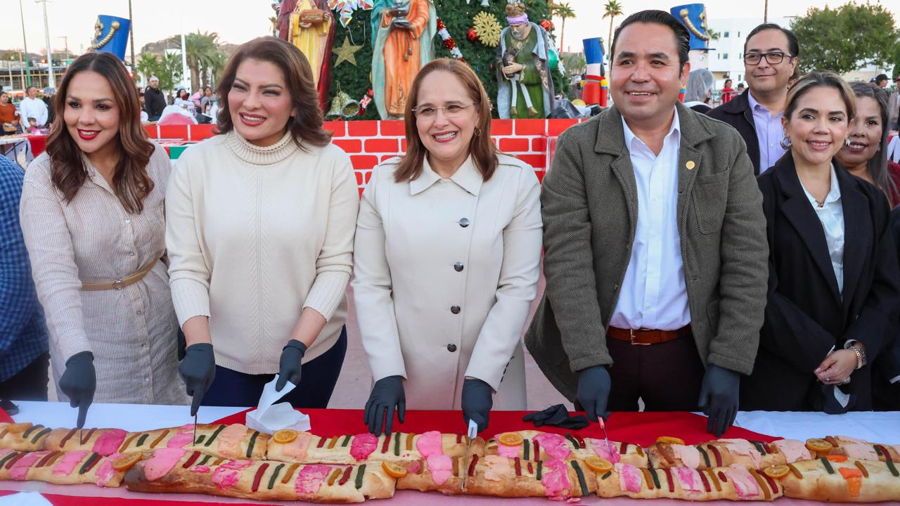 Guaymas, Sonora, 06 de enero de 2025.- En un evento que reunió a niños y niñas de Guaymas, la doctora Karla Córdova González encabezó este lunes la entrega de rosca de reyes a familias que se dieron cita en la Plaza Tres Presidentes y de esta manera, juntos fortalecer las tradiciones y convivencia.