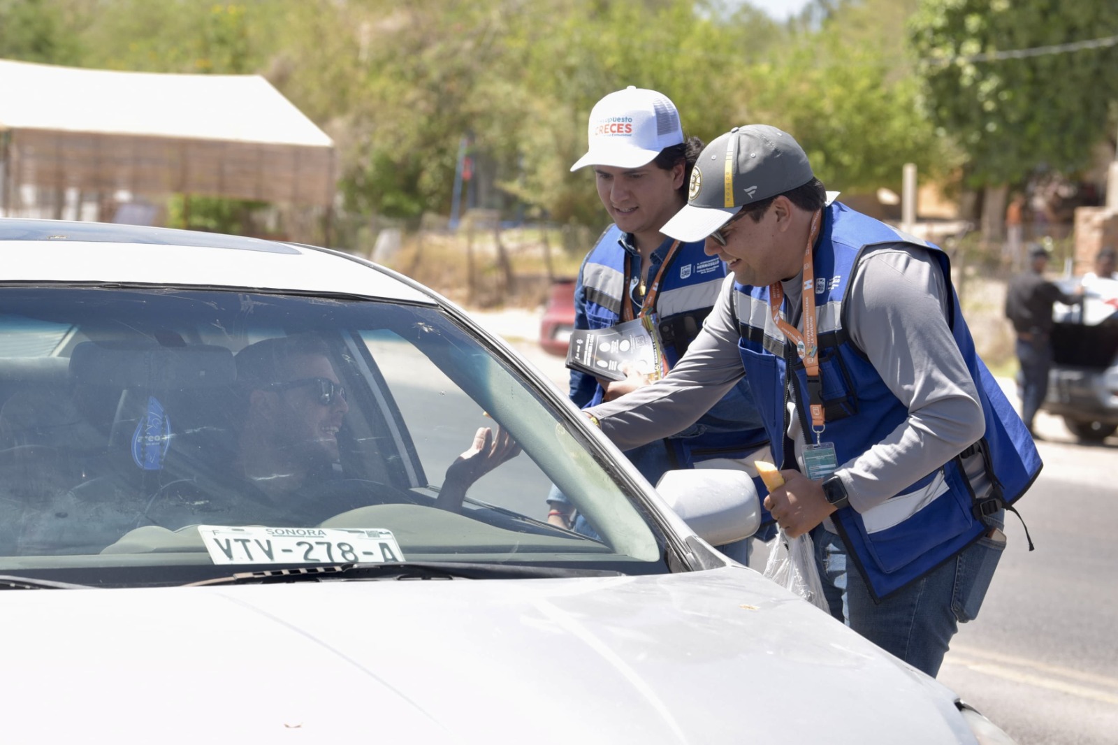 “Concientizando a la gente de la carretera que maneje prudentemente, sin alcohol, sin celular y también estamos en la salida a Bahía de Kino, donde hay otro operativo Agarra la Onda entregando bolis y volantes para que la ciudadanía conduzca responsablemente”, compartió.
