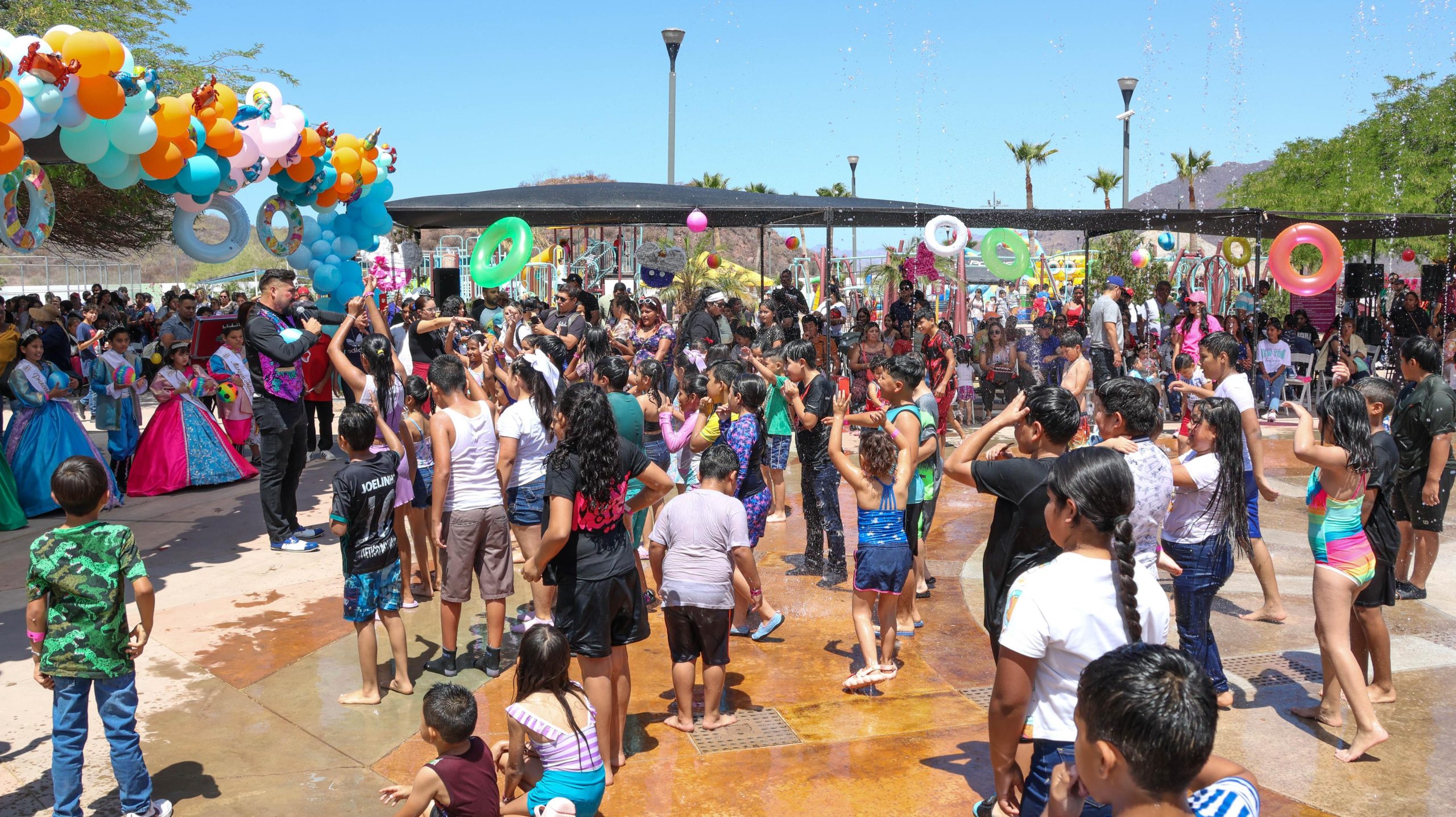 Guaymas, Sonora, 27 de abril de 2025. Una agradable mañana llena de sorpresas y diversión organizó DIF Guaymas para festejar a mil 700 niñas y niños del puerto, quienes disfrutaron de los juegos del Parque Infantil.
