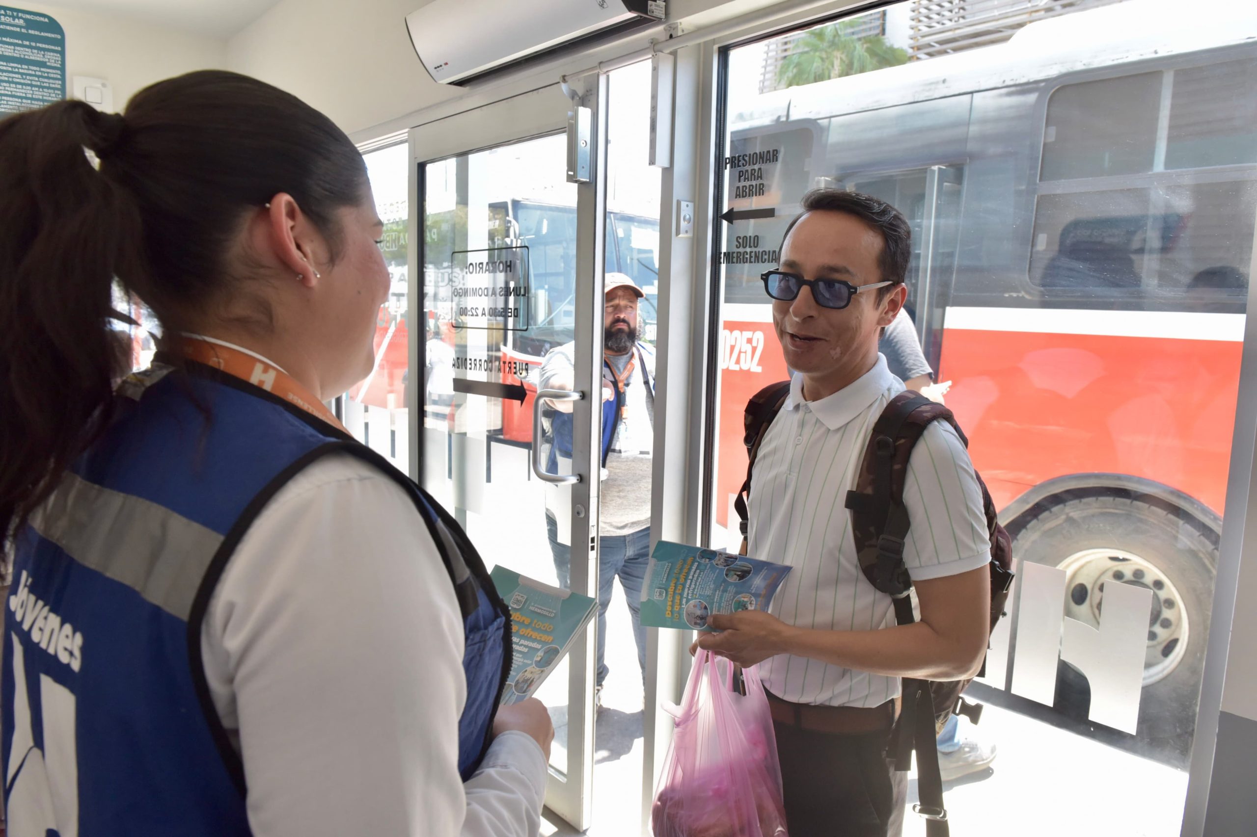 Integrantes del personal del Instituto Hermosillense de la Juventud (IHJ) se dieron a la tarea de difundir las bondades de los 6 establecimientos que actualmente operan en diferentes puntos de la ciudad, cuyo propósito es que quienes necesitan desplazarse en unidades de transporte urbano las esperen en condiciones dignas, seguras y confortables.