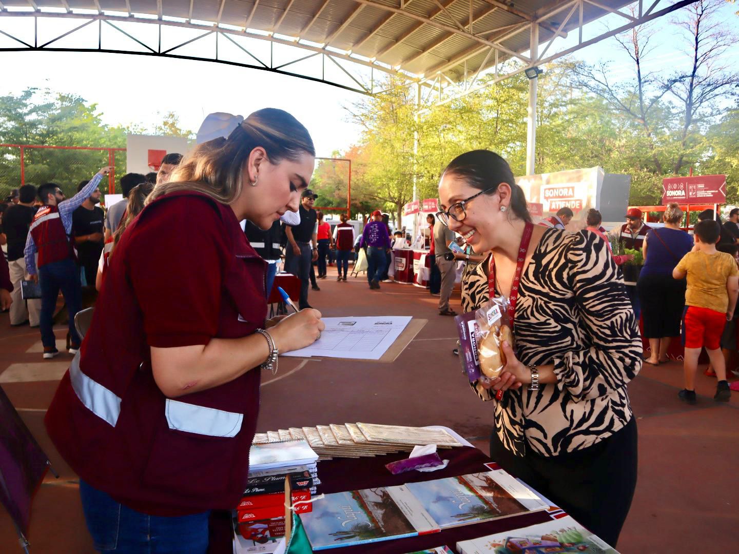 Mercedes Enríquez dijo que la feria de servicios “Sonora Atiende” beneficia a aquellas personas que por alguna condición física se les dificulta trasladarse a oficinas gubernamentales, y con estos eventos pueden resolver sus inquietudes con distintas dependencias.
