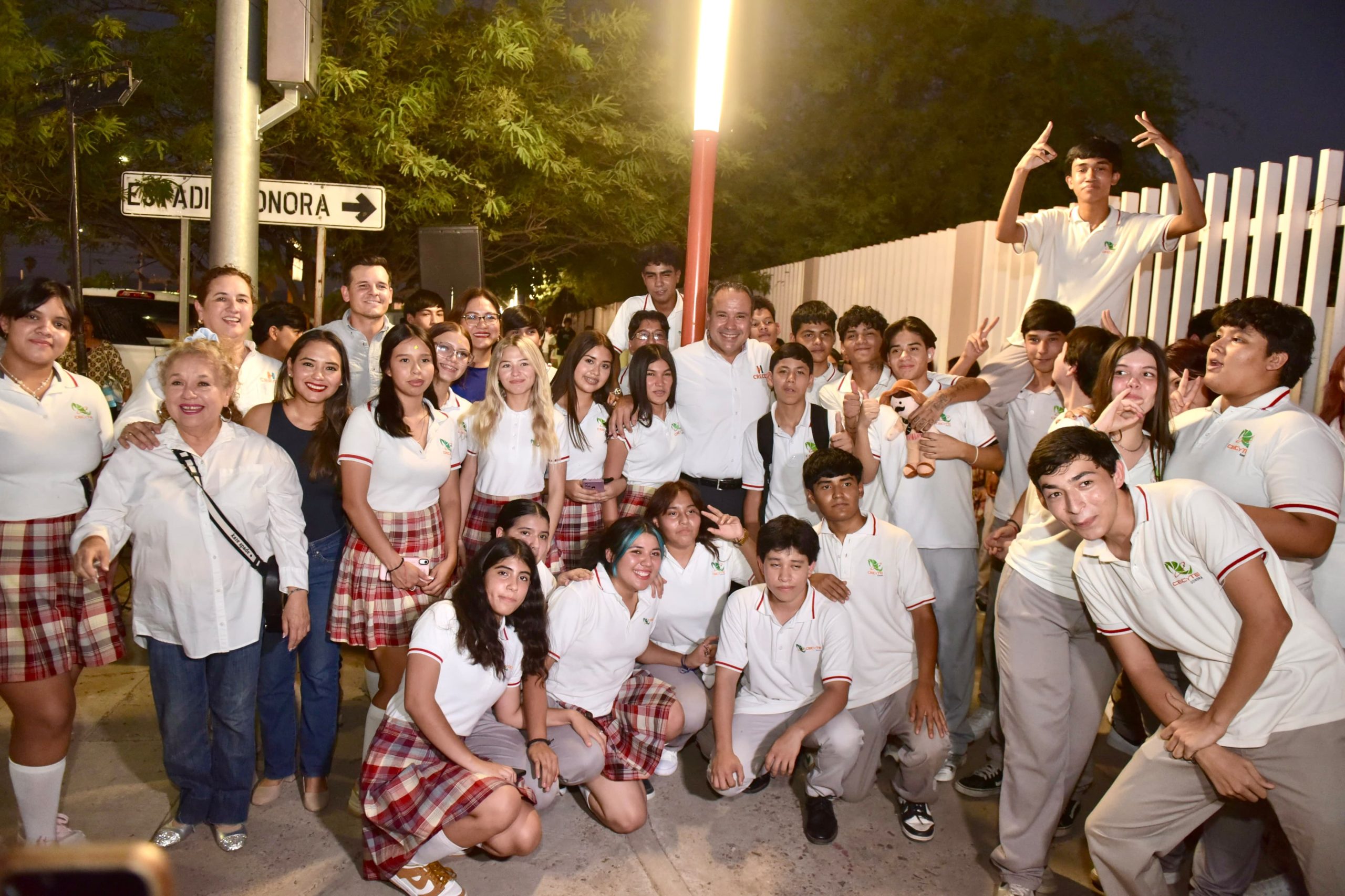 Hermosillo, Sonora; 9 de septiembre de 2025.- En un ambiente de algarabía de los jóvenes estudiantes, el presidente municipal de Hermosillo, Antonio Astiazarán Gutiérrez entregó a la comunidad escolar del CECYTES La Manga y residentes de la colonia un nuevo corredor iluminado del programa Camina Segura, así como las banquetas y camellones próximos al plantel que se rehabilitaron gracias al Presupuesto Participativo CRECES 2024.