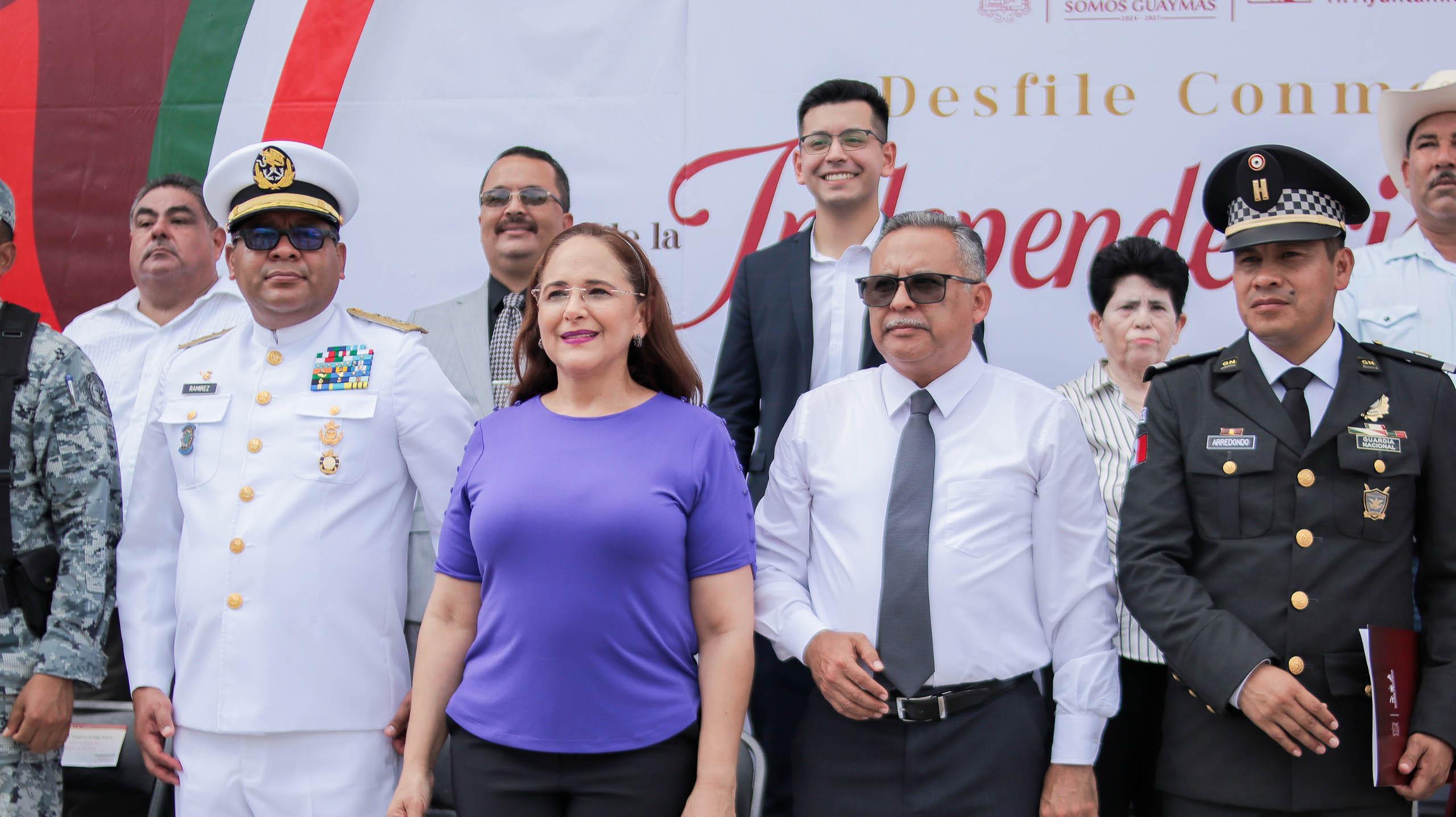 Guaymas, Sonora, 16 de septiembre de 2025. Con la participación del sector educativo, cuerpos de seguridad y emergencia, el Ayuntamiento de Guaymas a través de Acción Cívica realizó el desfile conmemorativo al 215 aniversario del inicio de la Independencia México