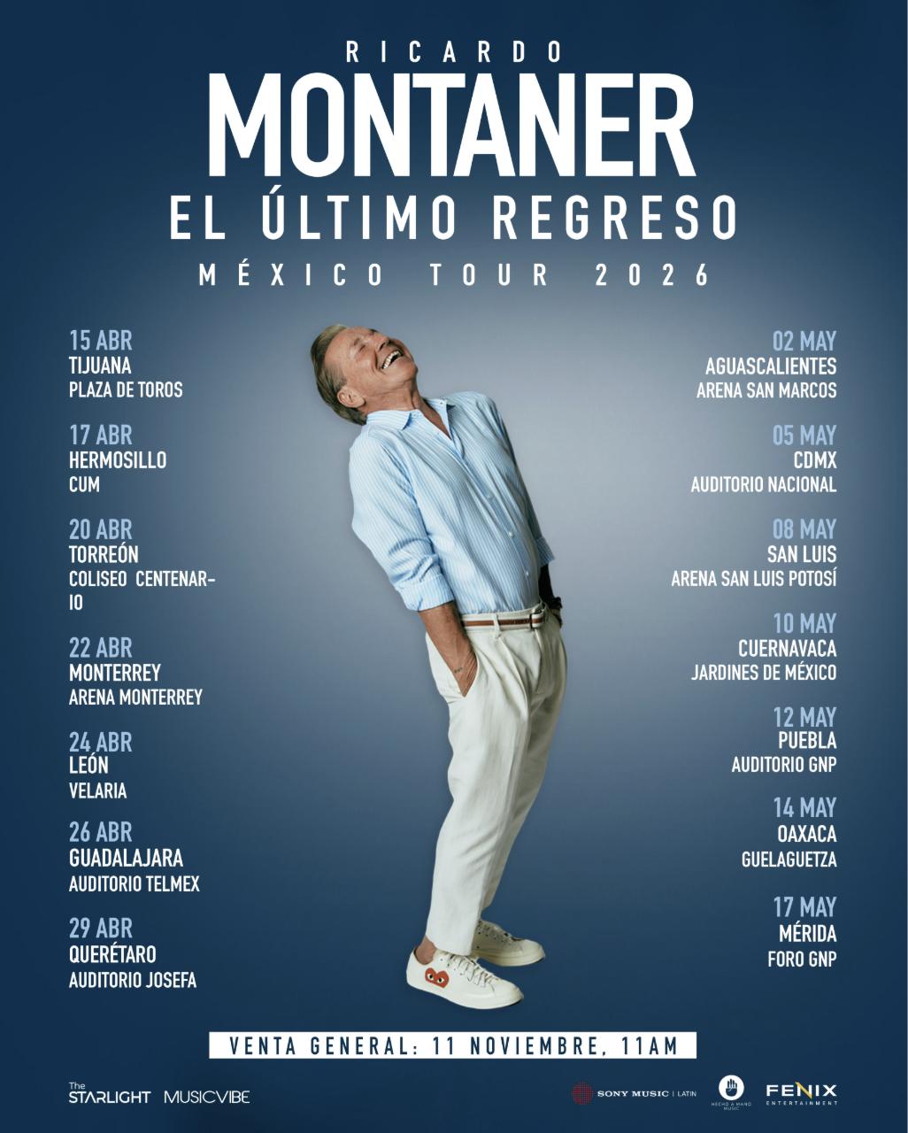 Ciudad de Mèxico 9 noviembre 2025 Ricardo Montaner no aguantó más la espera! Tras varios años de silencio en los escenarios, una de las voces más grandes de la música en español vuelve con “El Último Regreso World Tour 2026”, una gira mundial que es una declaración de amor que encenderá escenarios en todo el planeta.