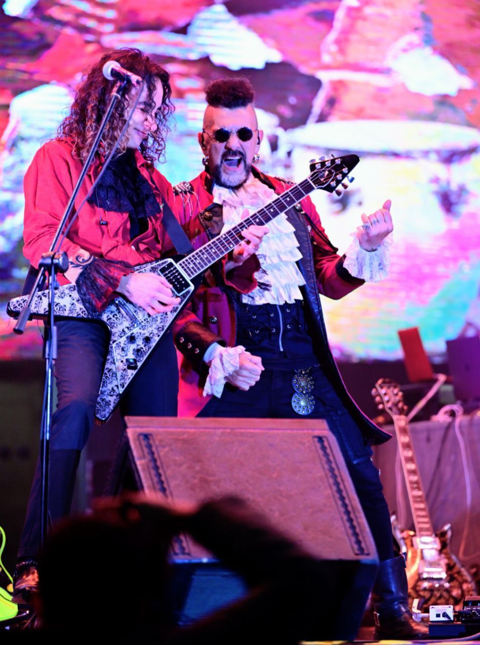 A unos pasos de ese recinto se congregaba la multitud para el escenario de la Plaza de Armas, ahí arribó Sergio Arau, con una vestimenta que evocaba a los compositores clásicos de antaño, en una mezcla entre estridentes guitarras, una batería que retumbaba en los rincones de Álamos, y la energía del rock en español que llegó a un público entusiasta que aplaudía cada uno de los temas.